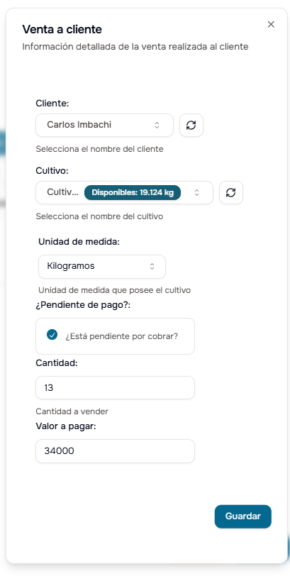 - Cultivo: Selecciona el cultivo del cual se venderá
