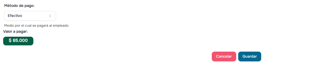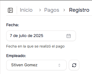 - Empleado: Selecciona el empleado que recibirá el pago