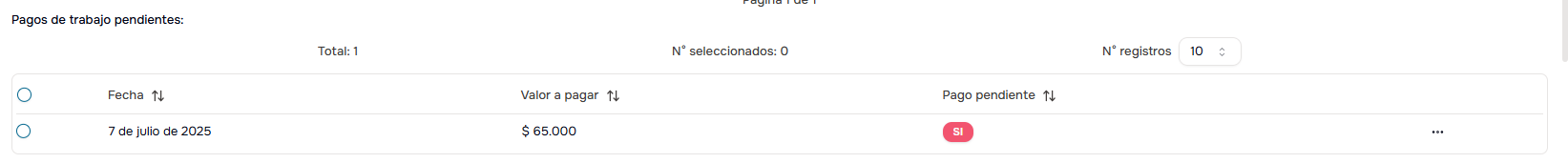 - Valor a Pagar: Monto pendiente por ese trabajo