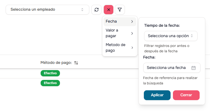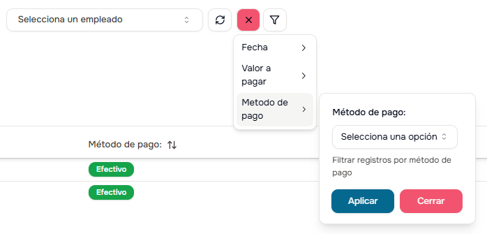 - Empleado Específico: Filtra por trabajador particular