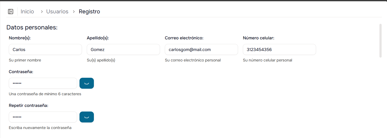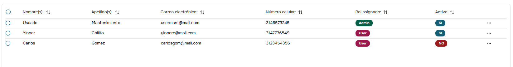 Al ingresar al módulo verás una tabla que lista todos los usuarios del sistema con la siguiente información: